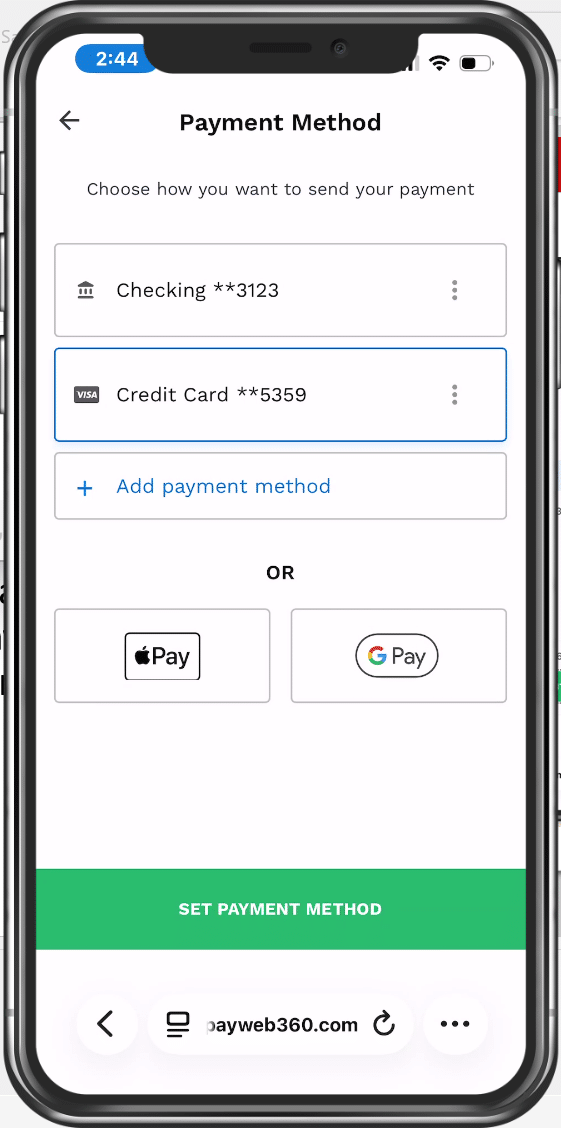Now they land on the Add Payment Method screen.